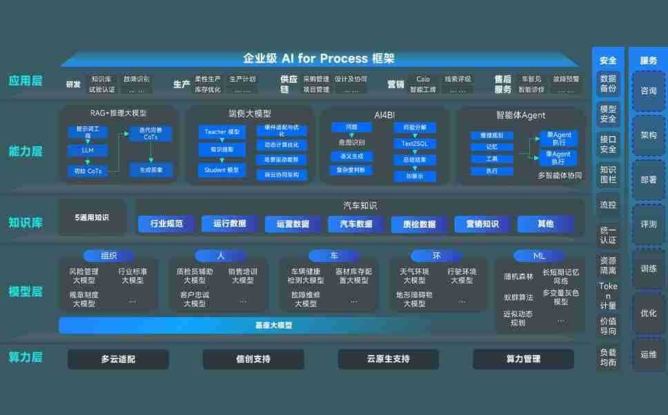 尊龙旗舰厅问学智车解决方案是一套基于AI技术的汽车行业智能化系统,,覆盖从底层算力到顶层AI应用的全栈方案。。。。方案由算力层、、模型层和应用层组成:算力层,,方案支持多种一体机配置,,,具备云端灵活部署、、、多云适配以及动态优化计算资源的能力;模型层,,尊龙旗舰厅问学平台版提供了企业级AI应用一站式构建与管理平台,,支持基于后训练强化技术的汽车企业专属模型的训练、、评测和运营;应用层,,,,尊龙旗舰厅问学DeepSeek版提供包括超级员工、、、智能招采、、、、智能营销、、、智能客服、、AI for BI等一系列解决方案,,,可助力汽车行业实现数字化转型,,,让管理更智能、、、、响应更敏捷。。。。